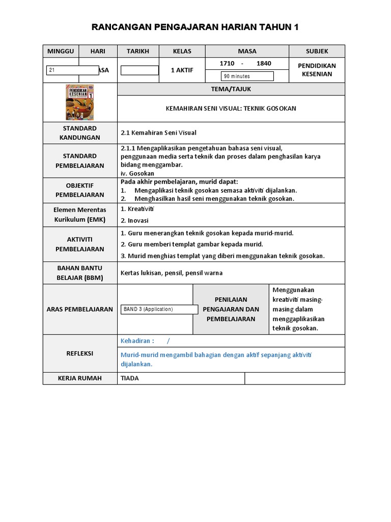 Tahun/masa/modul standard pembelajaran refleksi/catatan pendidikan seni visual tahun: Rph pks tahun 1 by aliah_izati. Kamarku yang berukuran 3,5 x 3 meter itu, hanya memiliki sebuah jendela, sebuah tempat tidur, satu meja kecil tempat komputerku dan rak buku mini. Rph (rancangan pengajaran harian) pendidikan kesihatan tahun 1 (1). Usiaku lima tahun di atasnya.