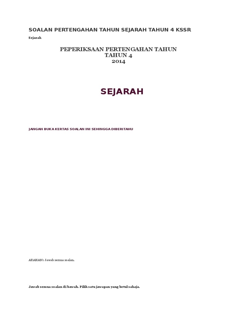 Soalan sejarah tahun 4 akhir tahun. Maybe you would like to learn more about one of these? Check spelling or type a new query. We did not find results for: